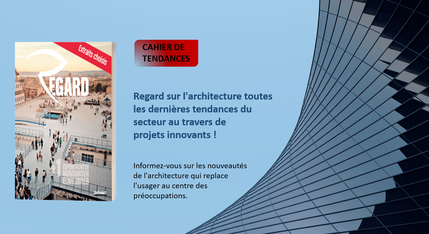 « Tout le monde aspire à vivre mieux et habiter mieux » selon Guillaume Loizeaud directeur de Batimat et du Mondial du Bâtiment. Regard sur l’Architecture est né de l’intention de valoriser toutes les formes de pensées ou réalisations innovantes du bâtiment et de l’architecture, parce qu’à chaque fois qu’un bâtiment est mieux conçu et réalisé, on y habite mieux. Valoriser, rassembler et connecter les innovateurs de la filière du bâtiment et de l’architecture, accélérer la diffusion de l’innovation sous toutes ses formes, telle est la vocation de Batimat. Retrouvez les meilleurs extraits de Regard sur l’Architecture, organisé autour de 3 verbes clés EXPERIMENTER, HUMANISER, EQUILIBRER comme des symboles de la nouvelle architecture.
